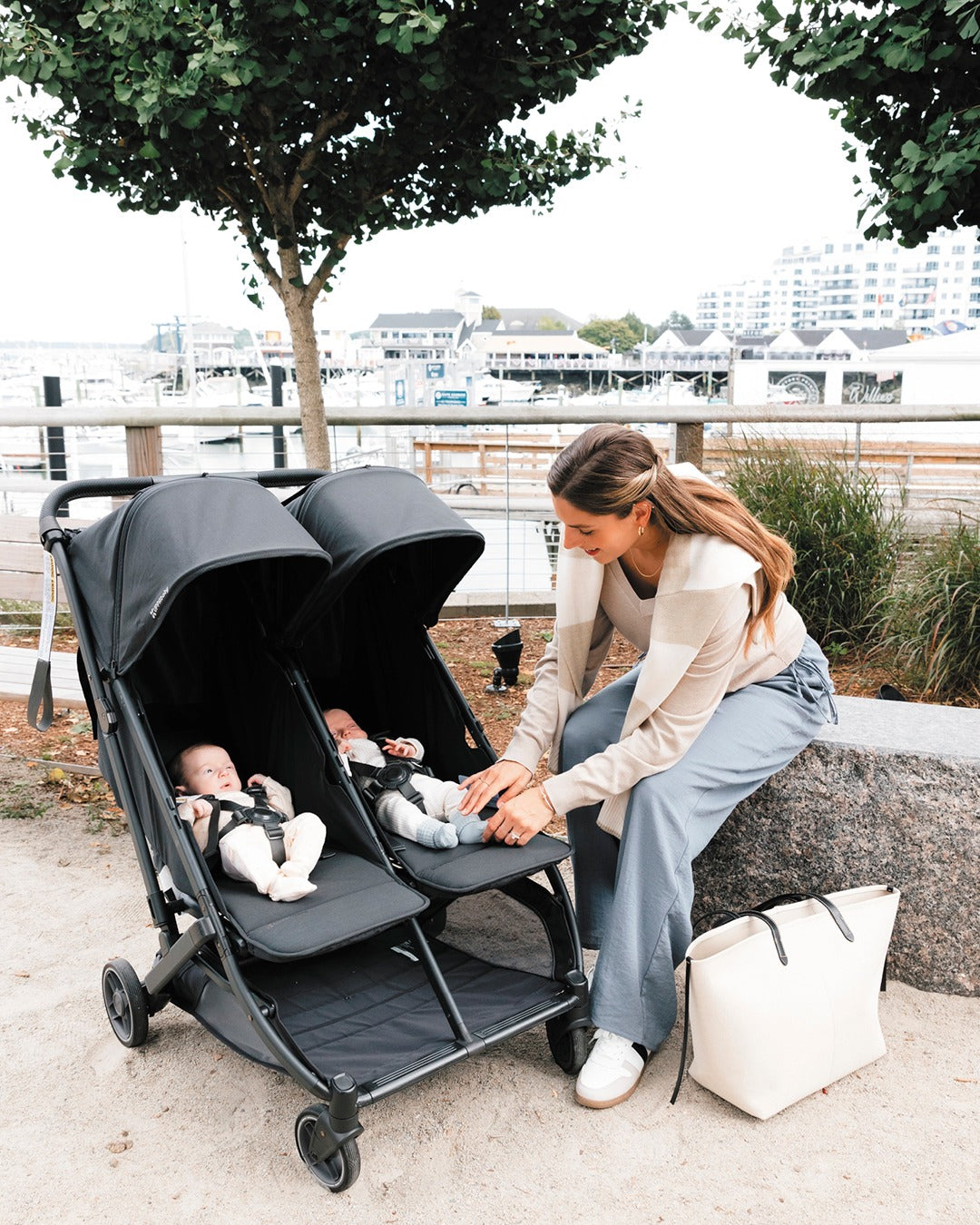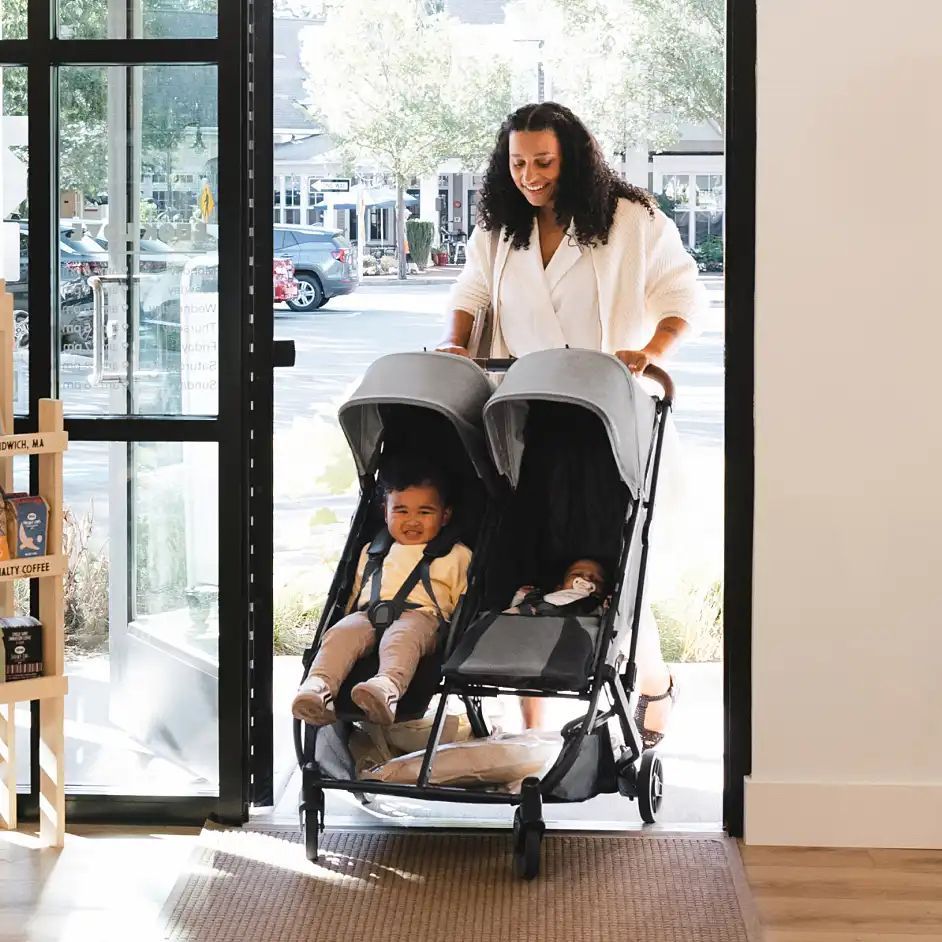 A from-birth, side-by-side compact stroller for two children, allowing you to easily explore as a family wherever your day takes you.