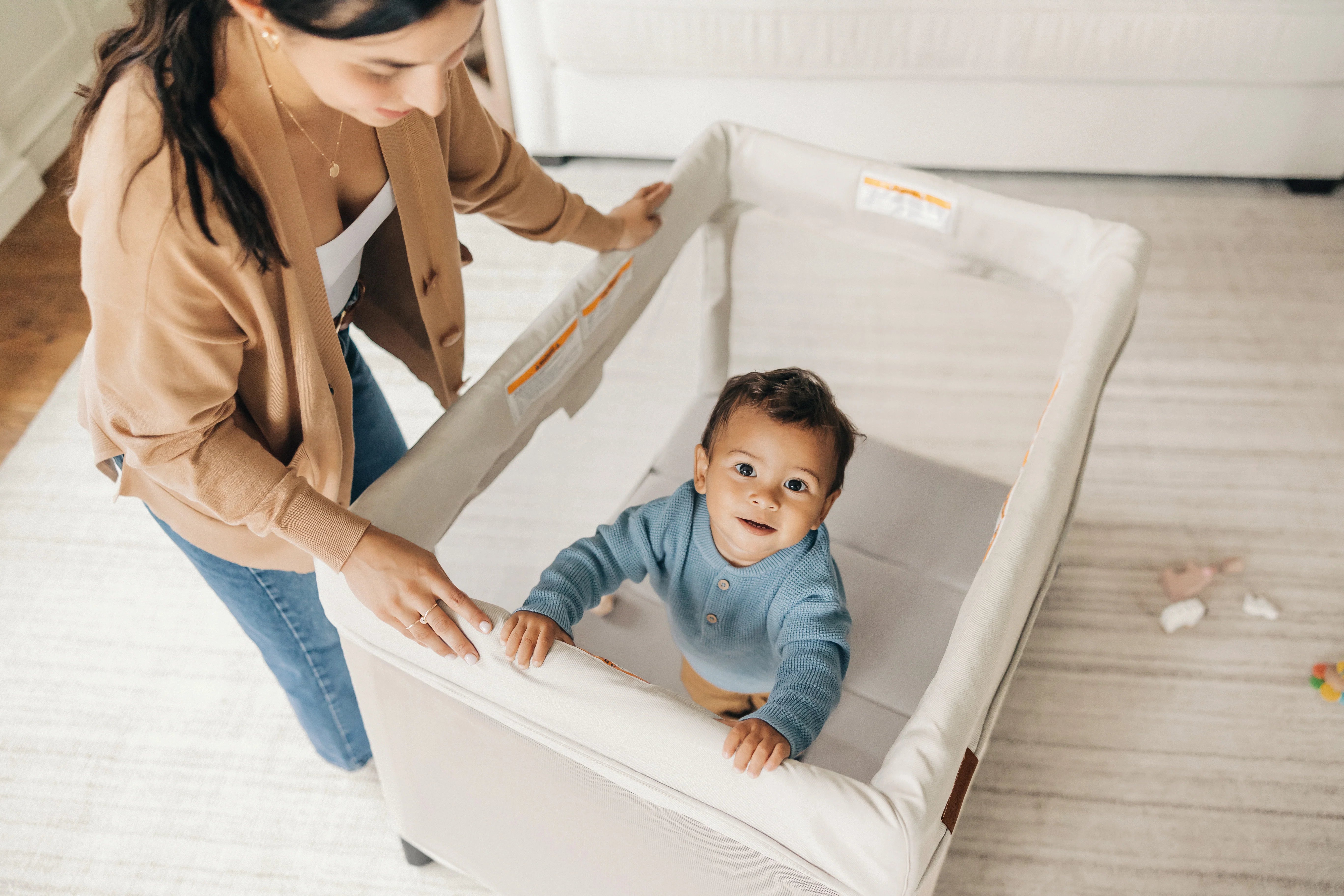 Remi’s ventilation benefits support infant rest and health, from those first days laying directly on its mattress to later, more adventurous stages. Simply zip on the included mesh bassinet for a newborn bedside solution, and zip it off when baby is older or needs a safe play space.
