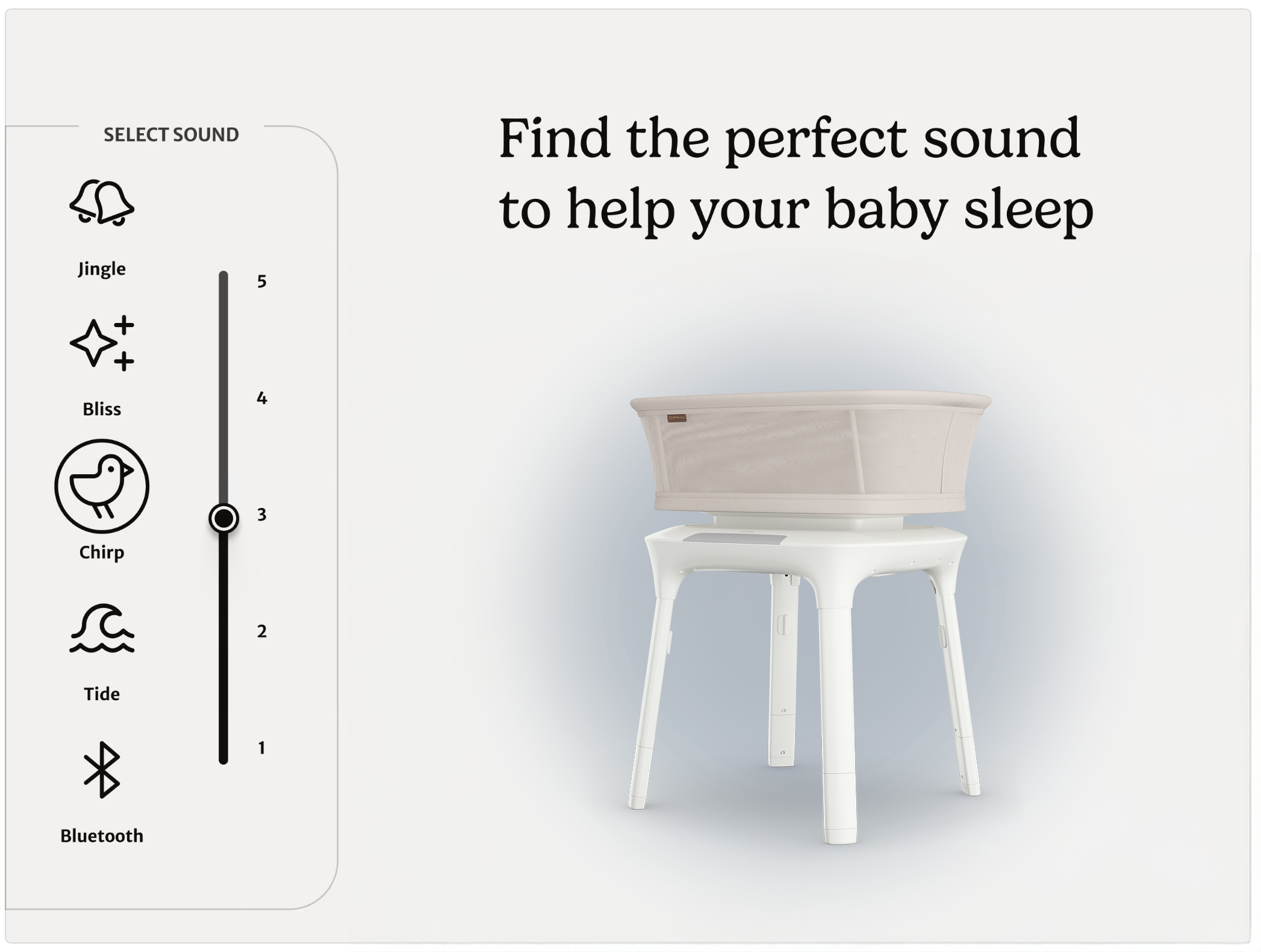 Connect your smartphone via Bluetooth to easily control Soma’s settings from wherever you are in the room, adjusting motion, sound, or timing without disturbing your baby. Prefer hands-on? The touch-sensitive, backlit UI display lets you make quick changes right on the bassinet with a simple tap, day or night.